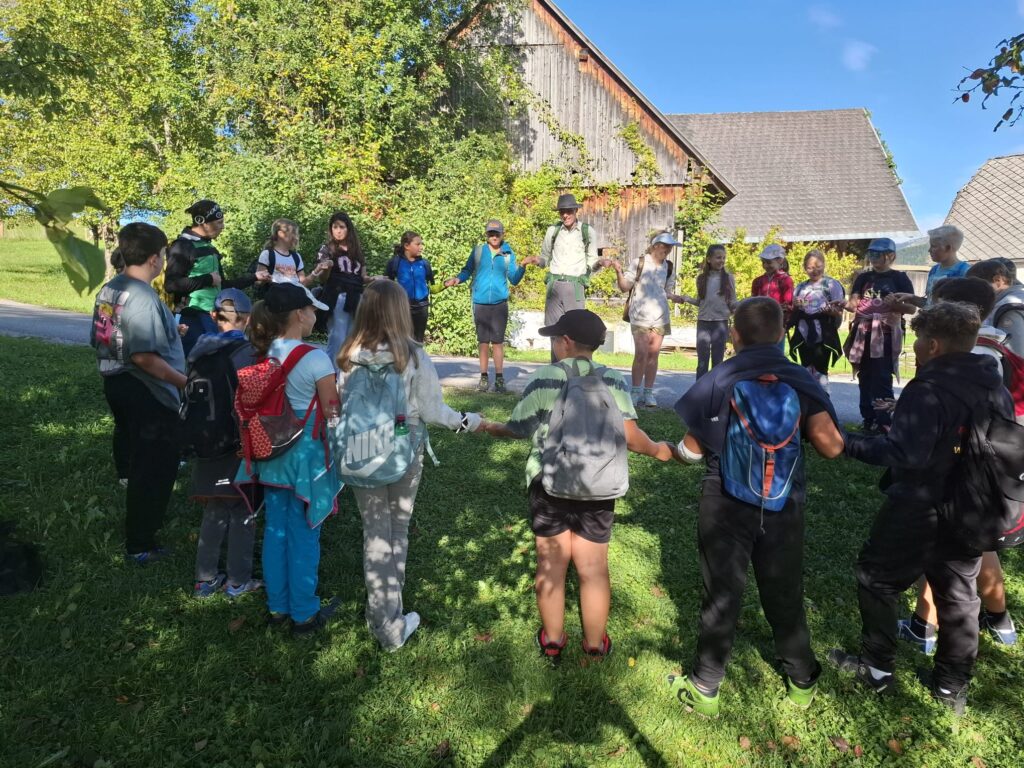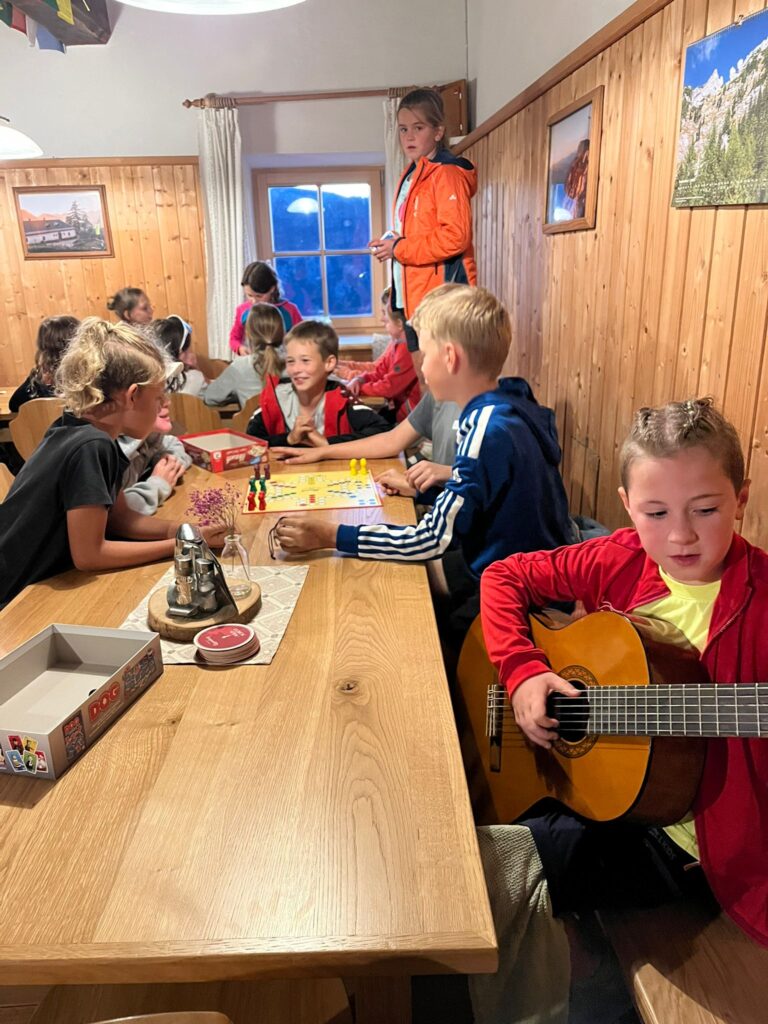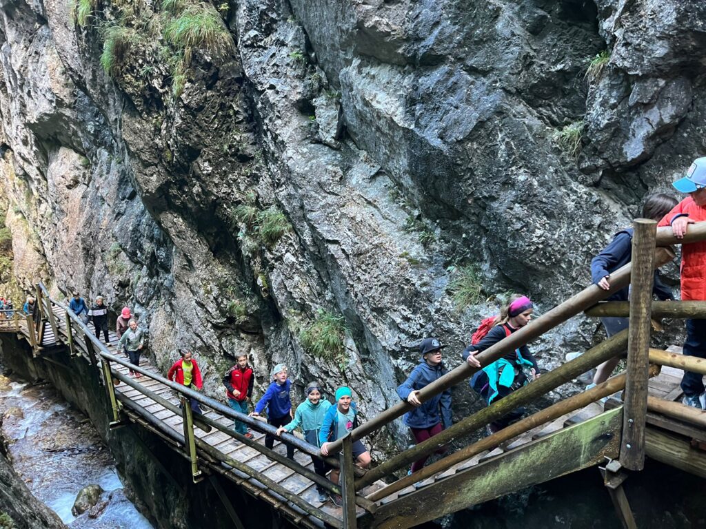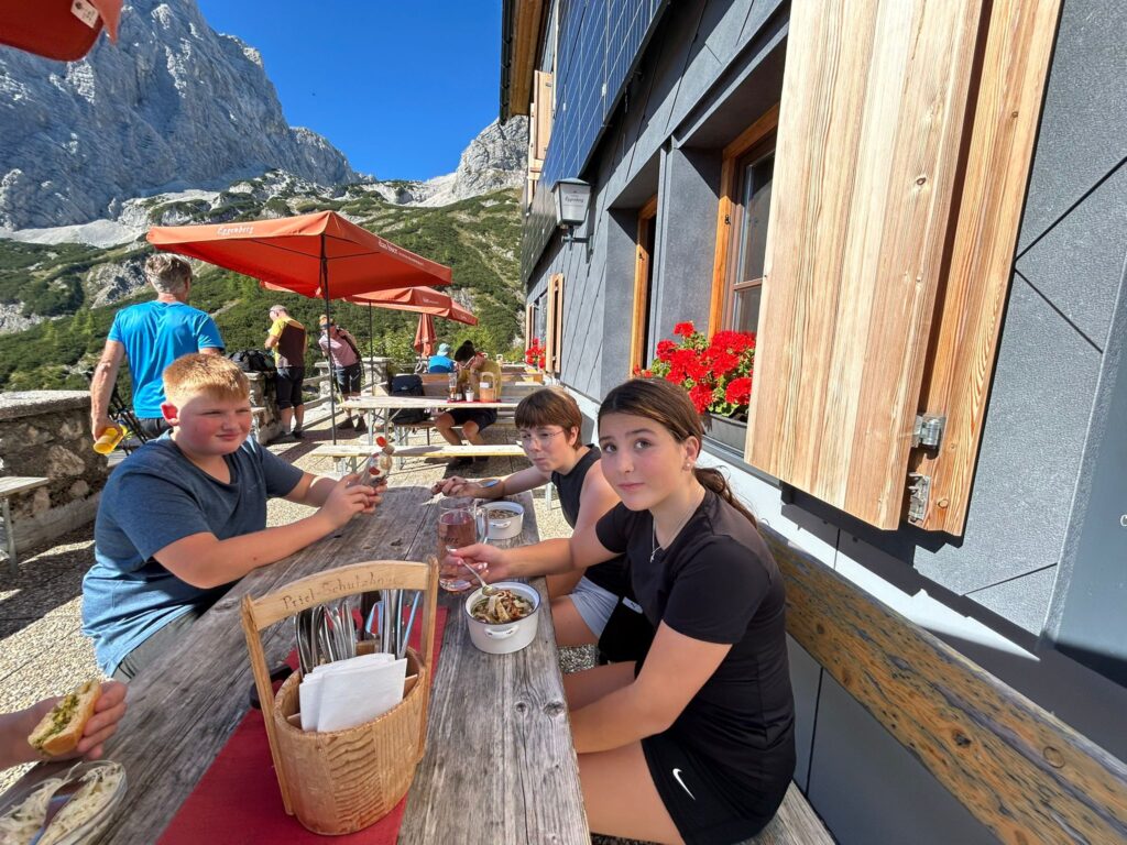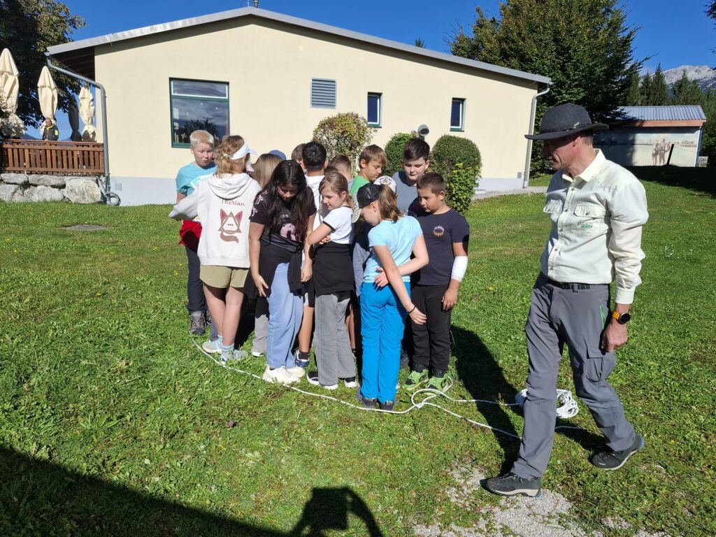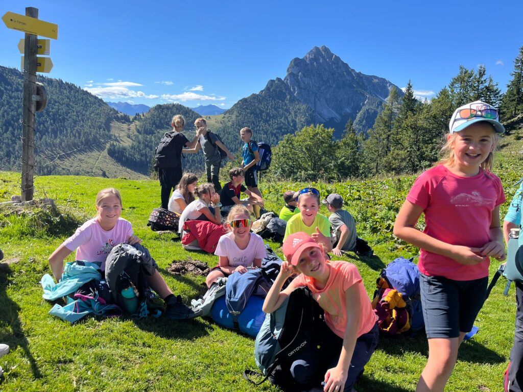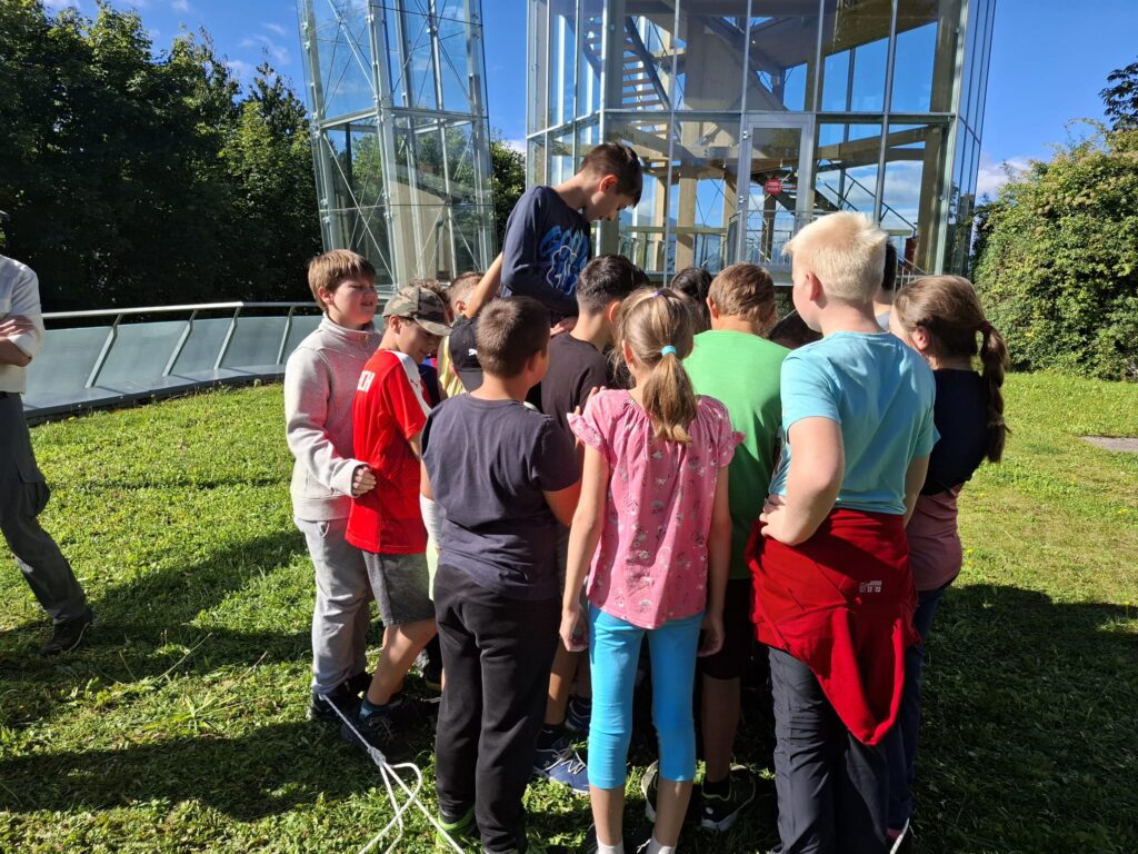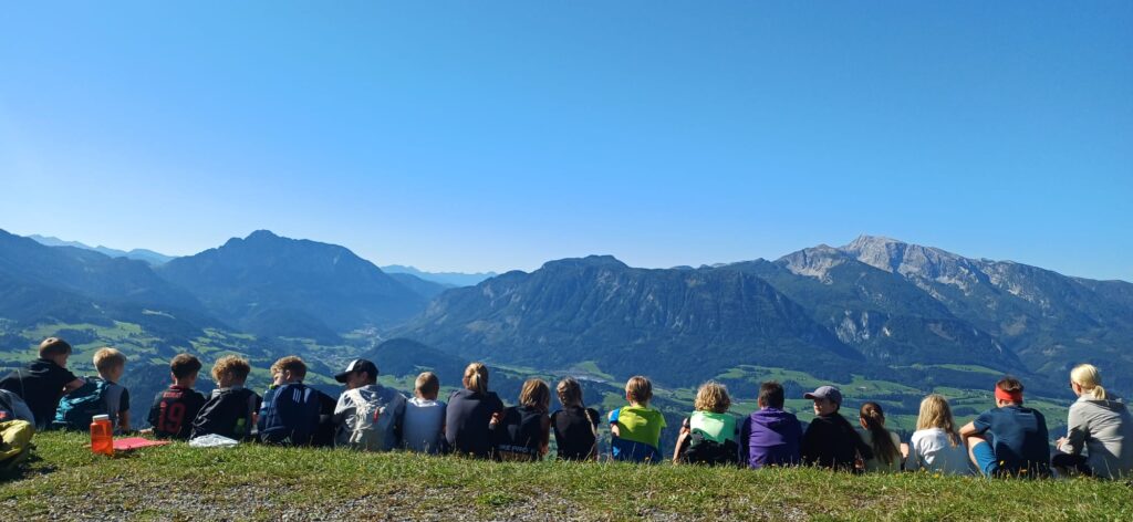 Die Schülerinnen und Schüler genießen das wunderschöne Wetter.